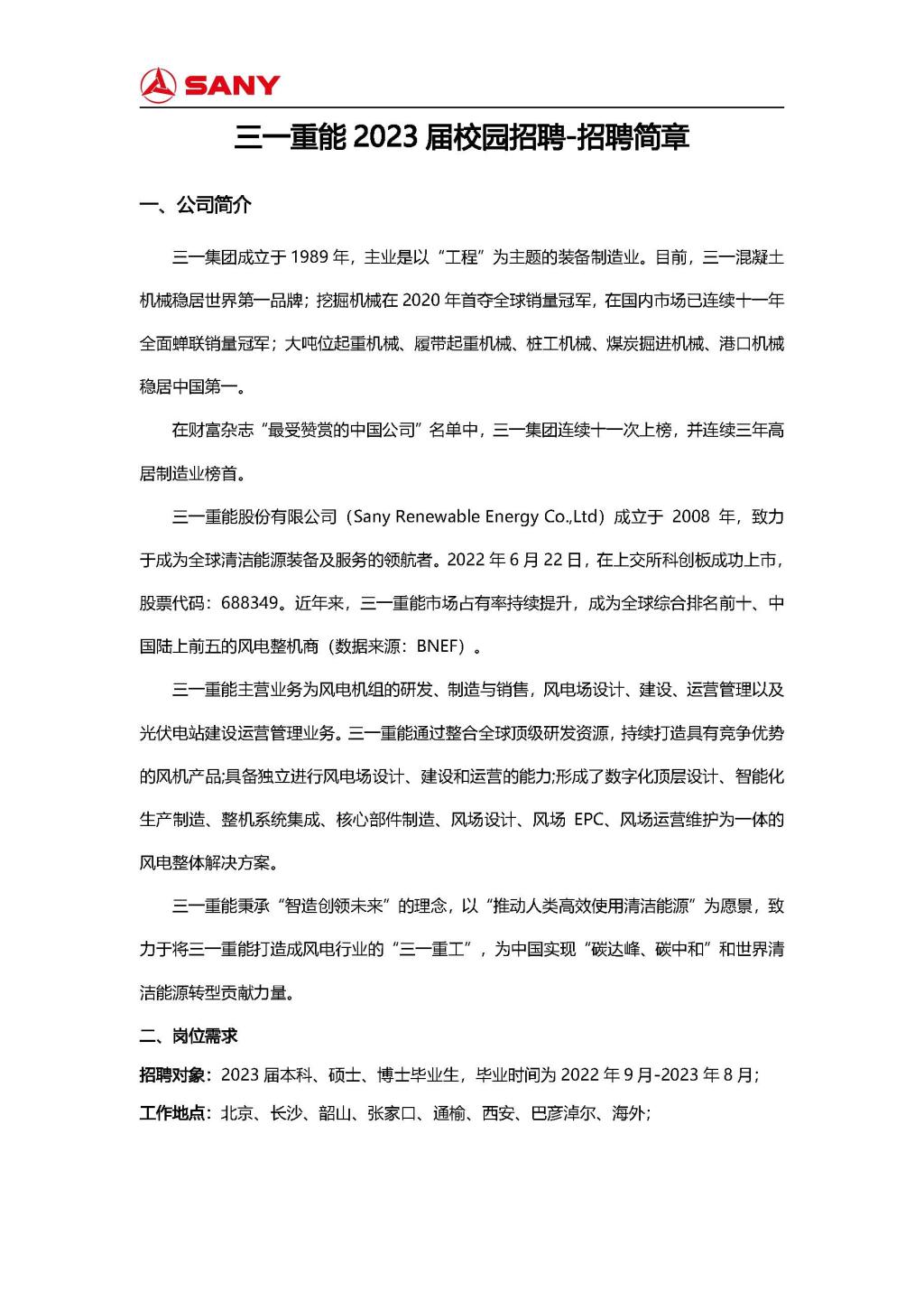 三一重能2023校招