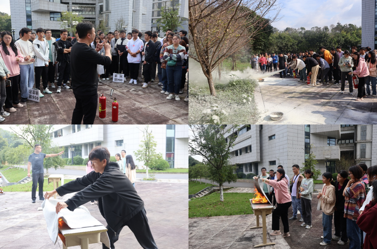 消防灭火实操过程中,在学校保卫处的指导下,本次演练使用明火给大家练习,并提供了灭火毯、二氧化碳灭火器等多种器材,鼓励同学们上手实操,切身体会遭遇火灾时的紧急情况,很好的锻炼了大家的风险应对能力。