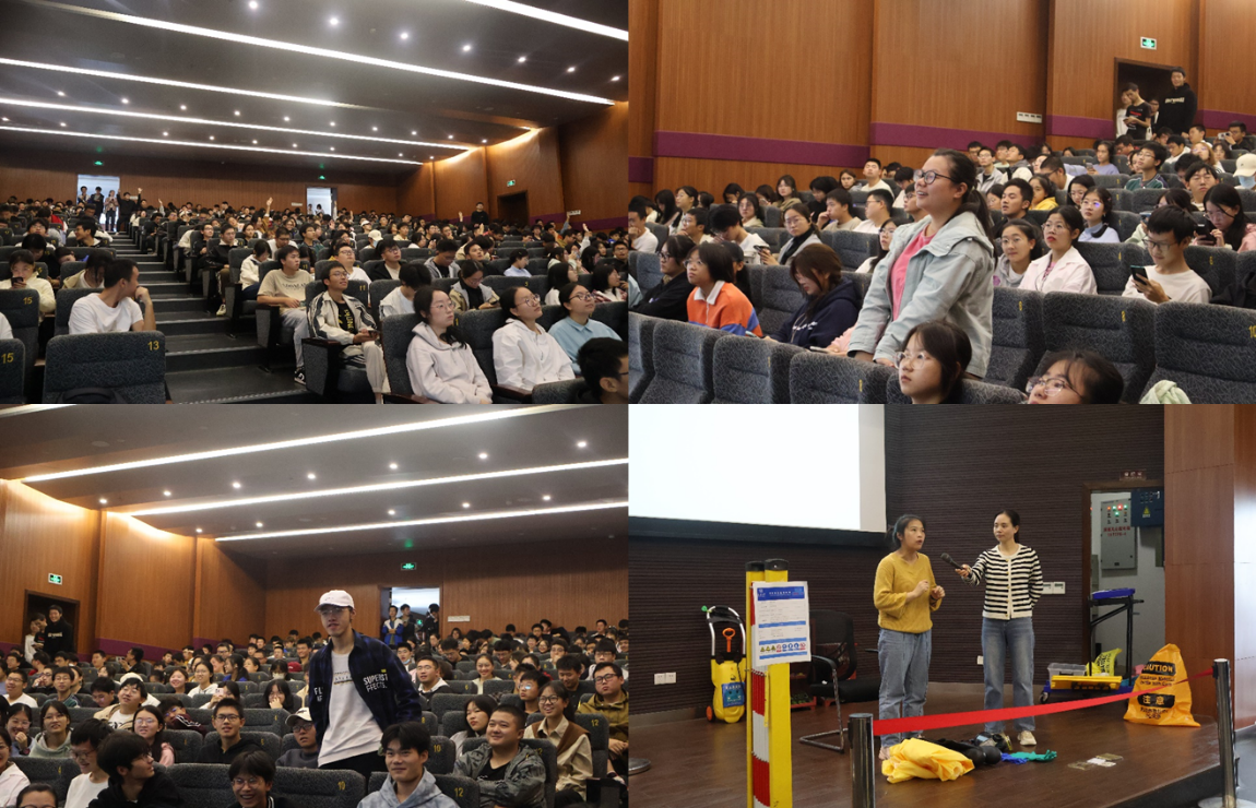 陶熊新老师主持开展场景演绎。这次演练以情景剧的方式,模拟了500 ml氢氟酸泄露事故,且剧中的所有角色均由校内老师和学生出演。从事故发生,紧急疏散,受伤人员急救到事故逐级上报和应急救援小组现场处置,陶老师的详细讲解和志愿者的生动表演向学生们传授了当发生危险化学品泄露事故时的一整套应急处理流程及注意事项。现场同学受台上活跃气氛的影响,也认真思考,积极参与互动,真正做到了身临其境,学以致用。