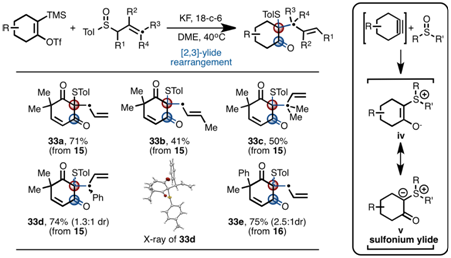 图4. 环己炔前体与芳基烯丙基亚砜反应