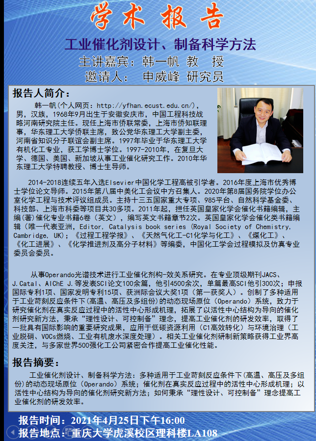 工业催化剂设计、制备科学方法 韩一帆教授