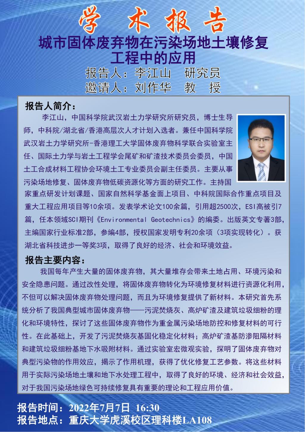 李江山研究员 城市固体废物在污染地土壤修复工程中的应用