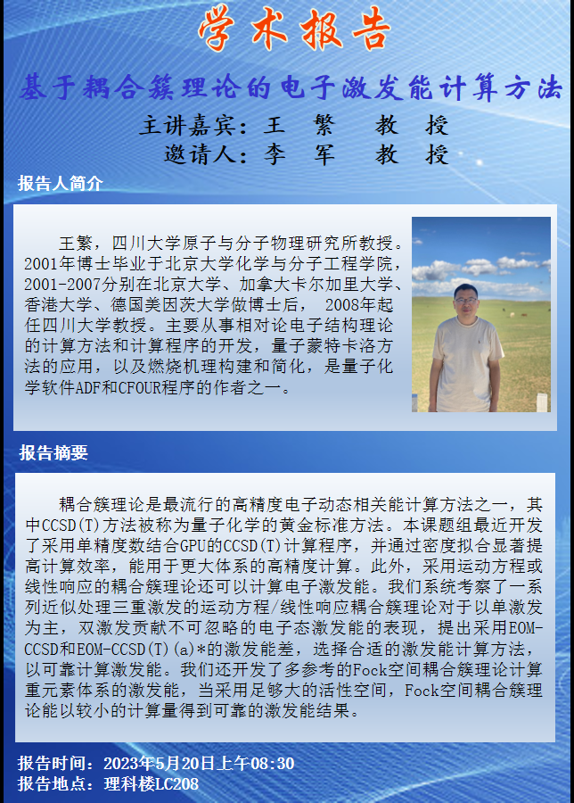 基于耦合簇理论的电子激发能计算方法