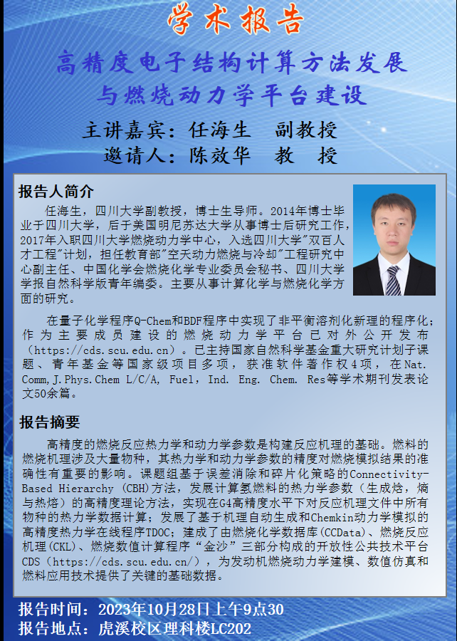 高精度电子结构计算方法发展与燃烧动力学平台建设