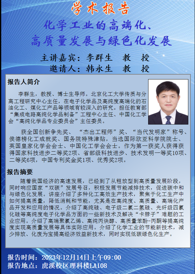化学工业的高端化、高质量发展与绿色化发展