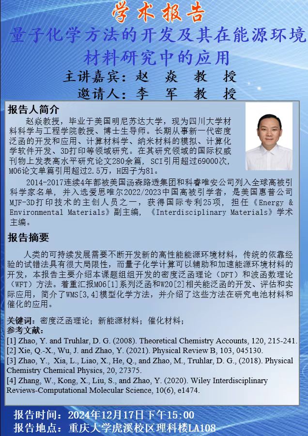 量子化学方法的开发及其在能源环境材料研究中的应用