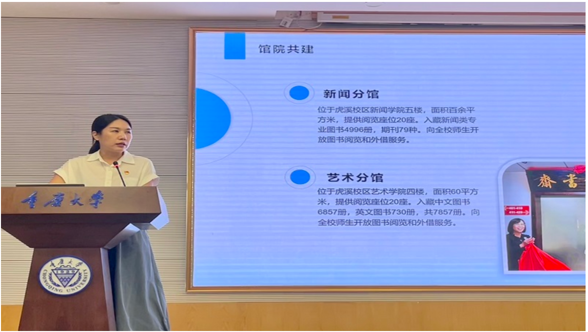 图书馆教工二支部书记李燕分享了支部建设亮点,包括馆院联动助力科研、馆社合作推广阅读、对接企业探索智慧服务、与民主党派合作凝聚力量等,展现了图书馆在服务师生、促进高质量发展方面的积极作为。图书馆第四支部书记陈瑶也在党建交流中介绍了支部特色品牌——“追寻黄桷树精神”专家访谈系列活动。通过面对面访谈学校退休老专家、老教授,将老一辈教育工作者"向下扎根、向上生长"的精神力量转化为支部建设的红色动能。