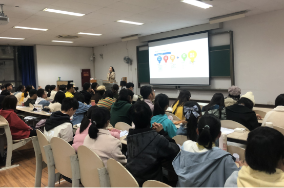生涯规划课由姜鲁宁老师主讲,姜老师以张宗益校长对2020级新生寄语的视频为开场,张校长希望同学们通过对“智”“学”“勤”“友”四个问题的探讨,尽快找准目标把握未来。紧接着姜老师用“大”“美”“暖”“靓”“强”五个字简单而准确的表达了大学的各个方面。