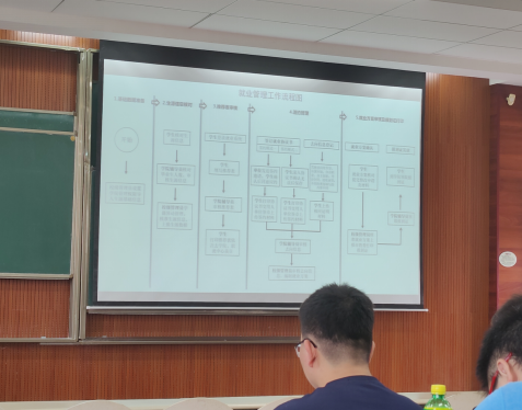 毕业生求职实际,鼓励同学们抓住“金九银十”的黄金求职季,要珍惜机会,主动出击。其次,陈老师就学校就业系统的使用、管理等方面问题进行讲述,提醒在场学生积极关注学校就业招聘信息,充分利用我校就业平台、官方微信。