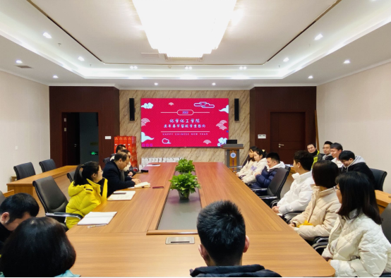 疫情防控规定;说明学校关于留校学生春节用餐与领取慰问品的安排;回顾了2021年的大事件,展望2022年的各种可能性,希望我们的学生能够将自身发展融入时代浪潮,同向同行,在未来取得好的成就。李书记在谈话中动情的讲到:“同学间、校友间的情谊很美好,因怀抱学习的热情而聚集在一起,因对未来有期待而共同努力,因个人选择不同奔赴四面八方,今天的相聚是一种缘分,再聚首时也能共话离情、情谊不变。”