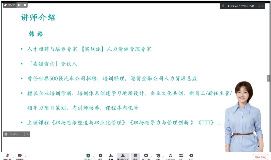 本科2024届辅导员伍丽主持,嘉道咨询培训合伙人韩璐老师进行主讲,来自全校各专业有求职计划的本科生、研究生共计40余名同学参加。
